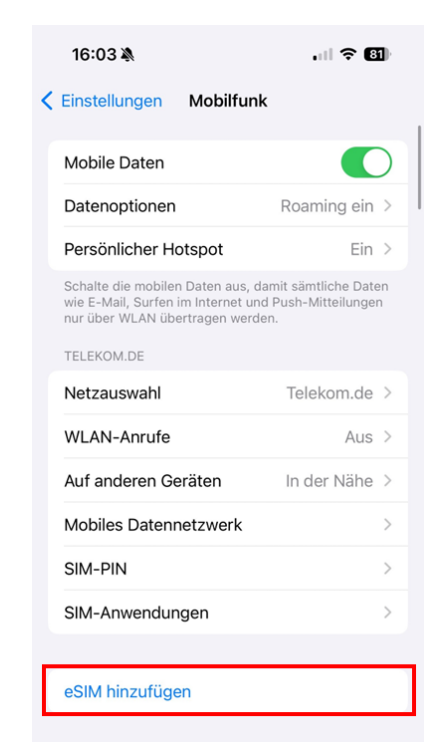 3. Tippen Sie auf „eSIM hinzufügen“.